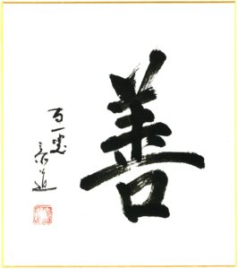 当社の社名Z E Nは、企業活動の本来あるべき姿に立ち戻り(「然」)、企業活動が社会の道義にかなっていること(「善」)、企業自身が自らの存在意義を探すこと(「禅」)、そして企業を取り巻く全てのステークホルダーのためにやり遂げること(「全」)を意味します。(色紙は松原泰道老師の揮毫による書です)